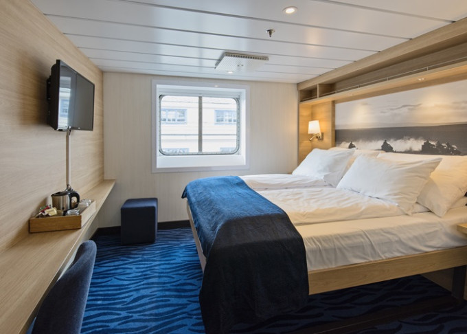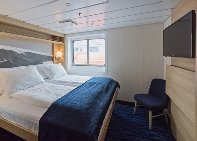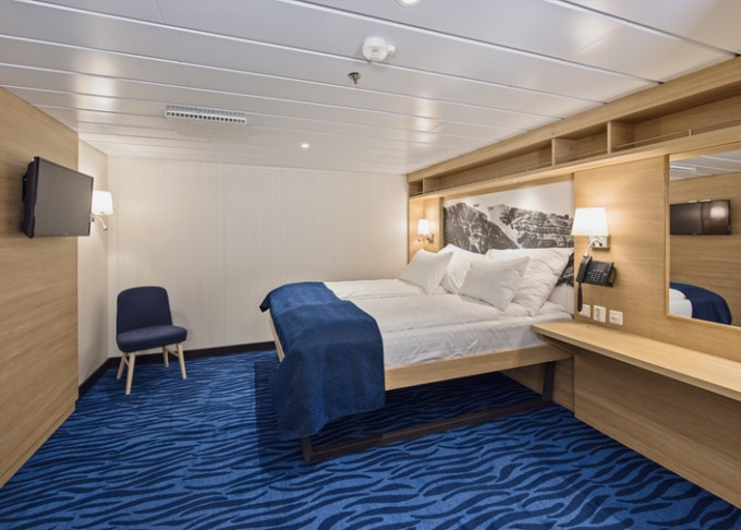 | P2D - Vnější kajuta Arctic Superior 14-15 m². Neotevíratelné okno s omezeným výhledem. Tv, varná konvice. Max 2 osoby. | 297 000 Kč 148 500 Kč za osobu | ||