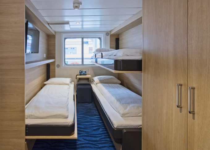 | QJ - Vnější kajuta Arctic Superior 14-18 m². Neotevíratelné okno s omezeným výhledem. Tv, varná konvice. Max 4 osoby. | 275 793 Kč 137 896 Kč za osobu | ||