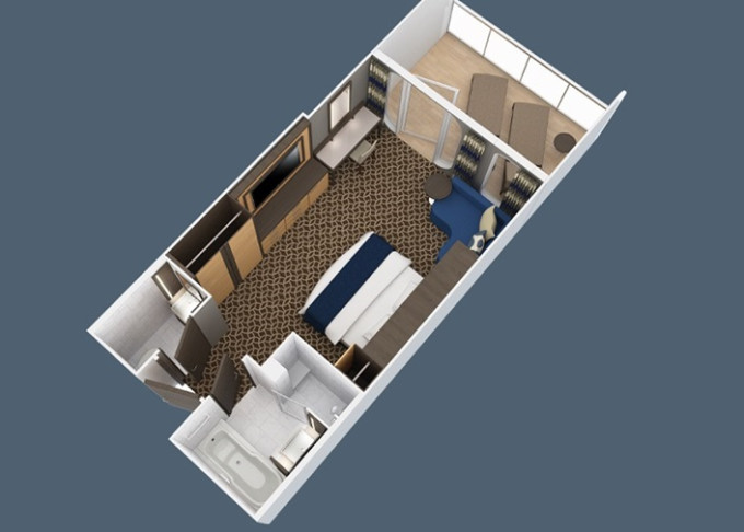 | 3U - Vnitřní kajuta s virtuálním balkonem 15 m². Obrazovka velkosti balkonových dverí s promítaným výhledem. 7. až 12. paluba. Max 2-4 osoby. | 44 040 Kč 14 680 Kč za osobu |