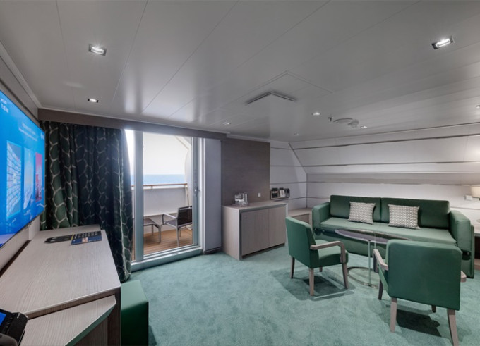 Aurea suite: 17 - 49 m² podle typu; kajuty mají prémiovou polohu v rámci lodě a jsou komforněji vybavené.