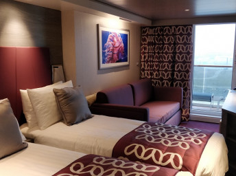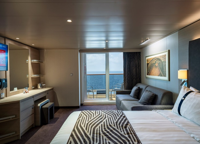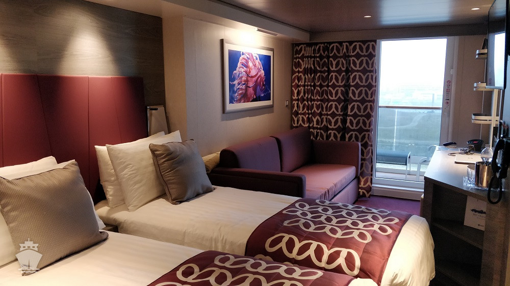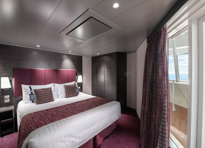 Kajuta s balkónem: 19 - 22 m², kajuta s manželskou postelí (na požádání 2 oddělené postele) a rozkládací pohovka. Klimatizace, koupelna se sprchou nebo vanou a WC, toaletní stolek, prostorná skříň, interaktivní TV, telefon, sejf, vysoušeč vlasů, virtuální asistentka ZOE. Balkony se stolkem a židlemi. Některé kajuty mají omezený výhled.