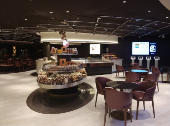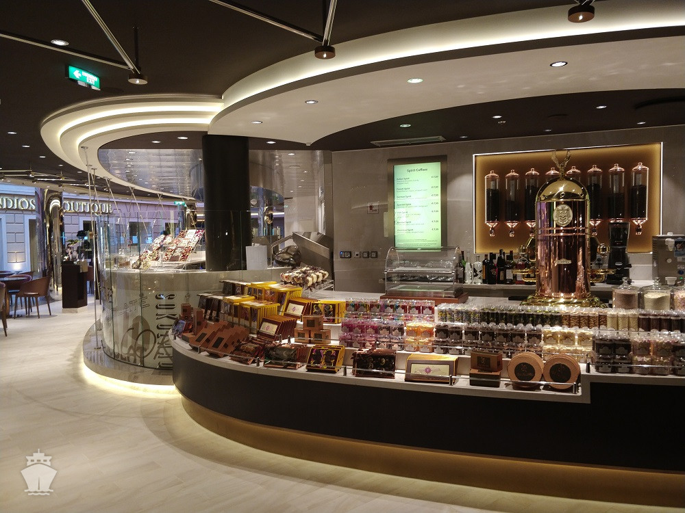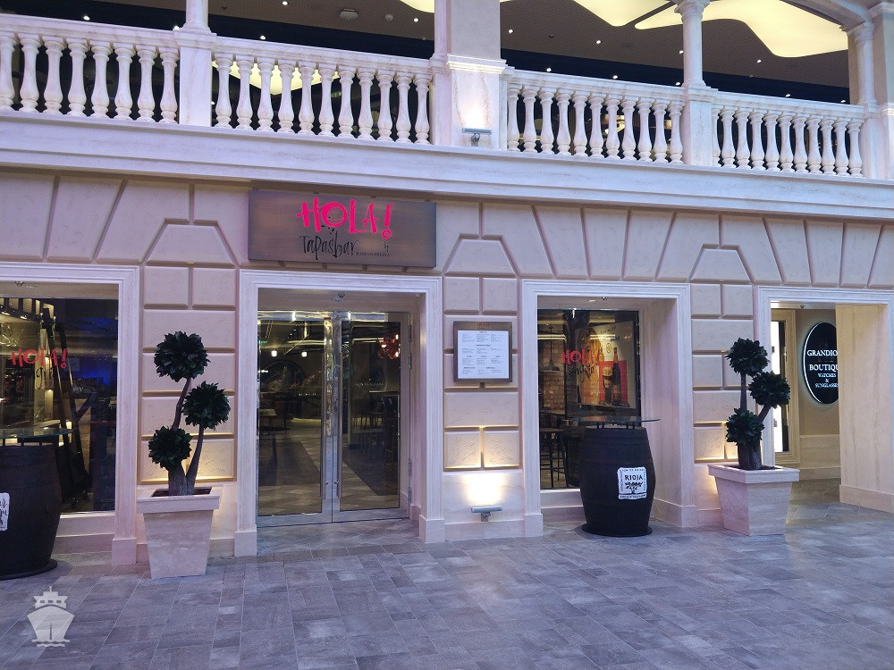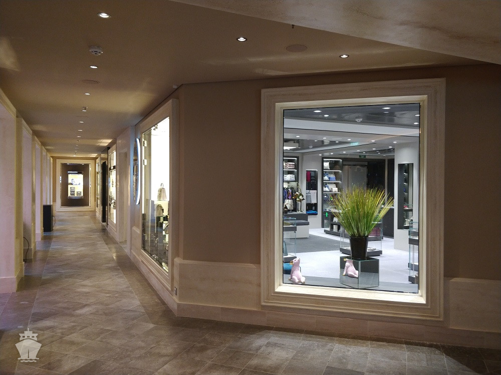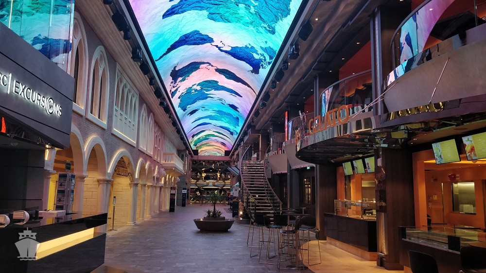 - promenáda s restauracemi, bary a duty-free obchody, zastřešená 480 m² LED "digitální oblohou" s vizuálními show