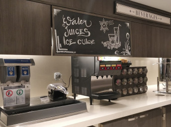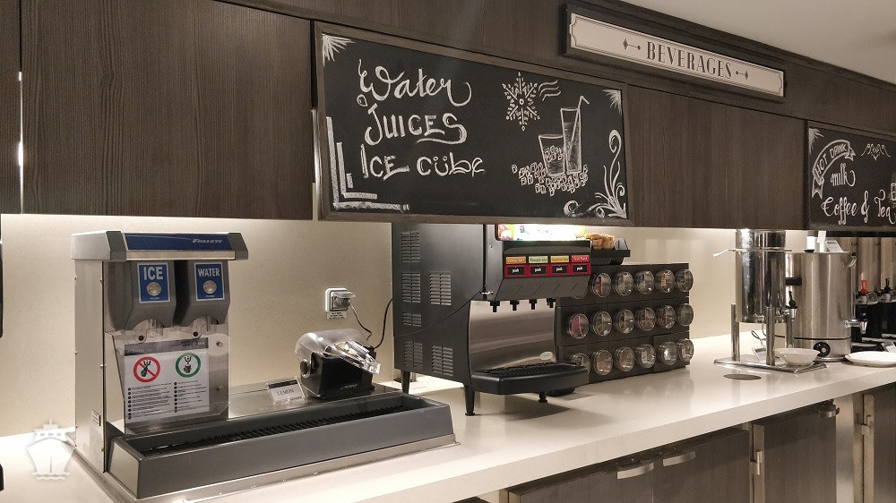 - nápoje (voda, káva, čaj) z automatů v bufetu 20 hodin denně; během snídaně voda, čaj, káva, mléko, kakao, džus