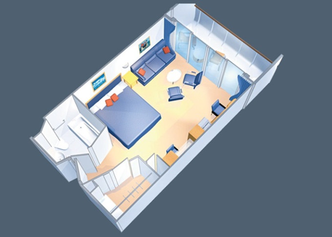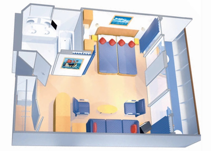 1K - Velká vnější kajuta Ultra Spacious 29,5 m². Neotevíratelné okno. 7/8. paluba. Max. 6 osob. 53 818 Kč 13 455 Kč za osobu