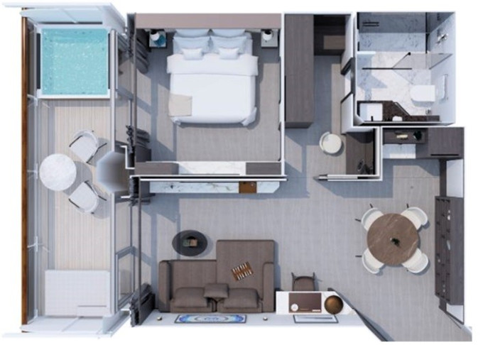 Cove Residence Suita 56 m² + terasa 14-24 m² s vířivkou.Ložnice oddělená od obytné části. Maximální kapacita 3 dospělé osoby nebo 2 dospělé osoby a 2 děti do 17,99 let. 493 166 Kč 493 166 Kč za osobu