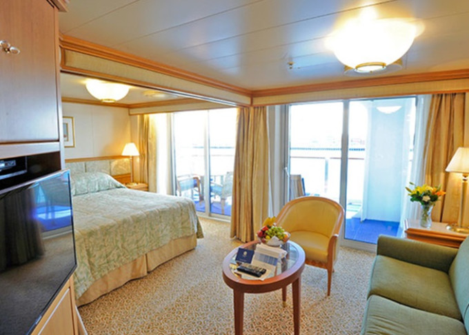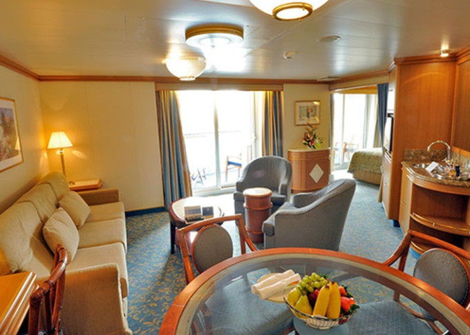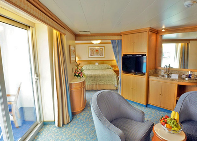 | M1 - Club Class Mini Suite s balkonem 33 m² (včetně balkona). Výhody Mini Suite. Max 3-4 osoby (gauč + 1 horní lůžko). | 282 495 Kč 141 247 Kč za osobu |