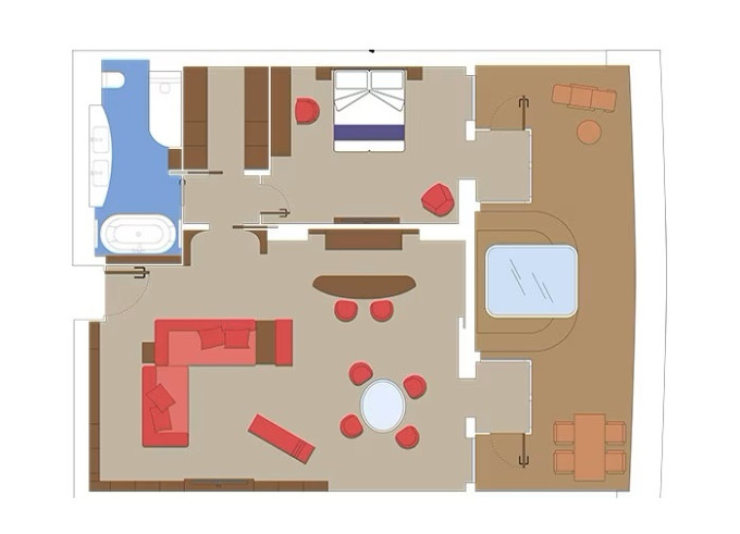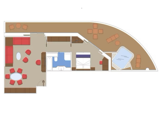 | YC3 - Yacht Club Royal Suite 51-59 m² / balkon s vířivkou 42-51 m². Oddělený obývací pokoj a ložnice, šatník, koupelna s vanou. Max 4 osoby. 16/18. paluba. Cenový model MSC Yacht Club. | 220 824 Kč 220 824 Kč za osobu |