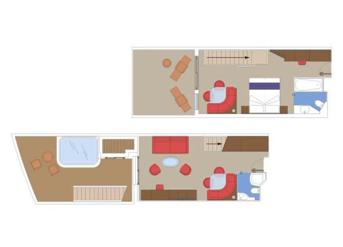 | YJD - Yacht Club Duplex Suite s vířivkou 46 m² + balkon 30 m². Vířivka. 2 podlaží, šatník, 2 koupelny (1 s vanou). Max 4 osoby. 16. paluba. Cenový model MSC Yacht Club. | 182 311 Kč 182 311 Kč za osobu |
