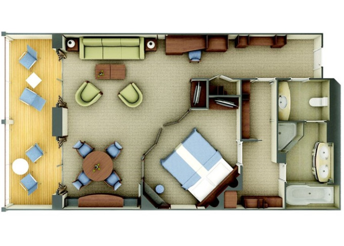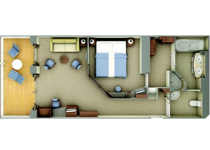 | SV - Superior Veranda Suite 32 m² (včetně balkona). Horní paluby. Ložnice s obývací částí. | 295 099 Kč 147 550 Kč za osobu | ||