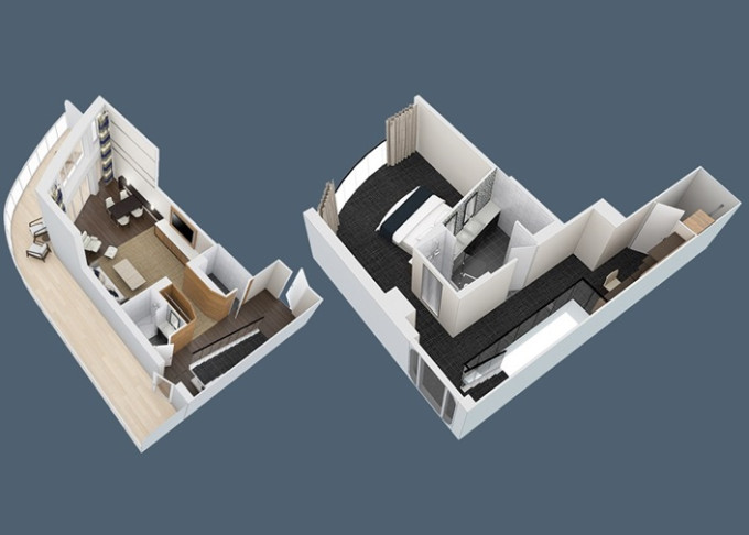 GL - Grand Loft Suite s balkonem 65 m² / balkon 33 m². Výhody Royal Suite Class. 2-podlažní apartmán. 8. paluba. Max 2-4 osoby. 508 971 Kč 169 657 Kč za osobu