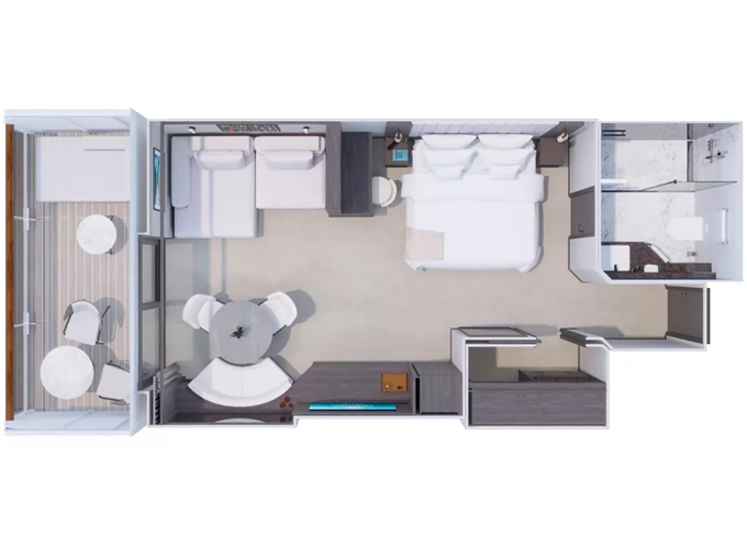 | Ocean Suites - Ocean Grand Terrace Suite Suita 28 m² + terasa 11 m². 6/7. paluba. Maximální kapacita 2 dospělé osoby a 1 dítě do 17,99 let. | 346 992 Kč 346 992 Kč za osobu |