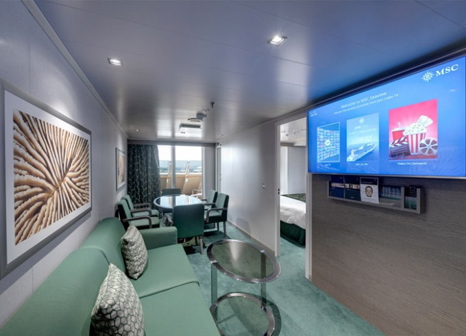 | YC3 - Yacht Club Royal Suite 62 m² + balkon 33 m² s vířivkou. Oddělený obývací pokoj a ložnice, koupelna s vanou, šatník. 16. paluba. Cenový model MSC Yacht Club. | 266 690 Kč 133 345 Kč za osobu |