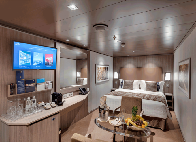 - ubytování v plně vybavené kajutě: vlastní koupelna se sprchou a WC, interaktivní TV, telefon, trezor, vysoušeč vlasů, regulovatelná klimatizace, minibar (za poplatek), Wi-fi (za poplatek)