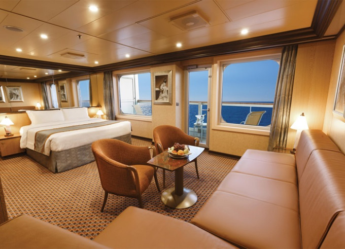 | S - Suite s balkonem Deluxe 26 m² + balkon 6 m². Max 2-3 osoby. 7,9. paluba. Cenový model Deluxe. | 93 982 Kč 46 991 Kč za osobu | ||