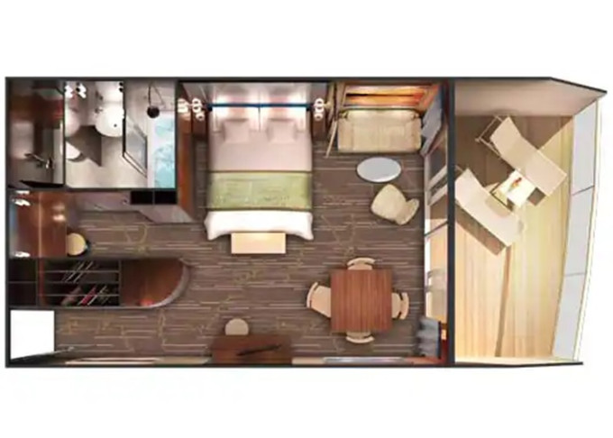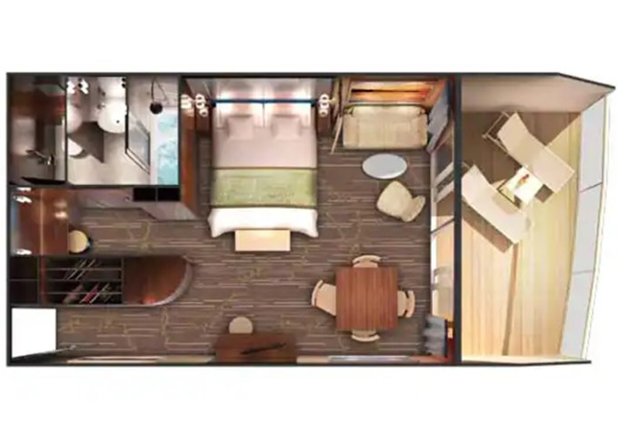 | SM - Aft-facing Penthouse 35-37 m² / balkon 8-10 m². Výhody Suite. 8/10. paluba - vzadu. Max 3 osoby. | 194 565 Kč 97 283 Kč za osobu |