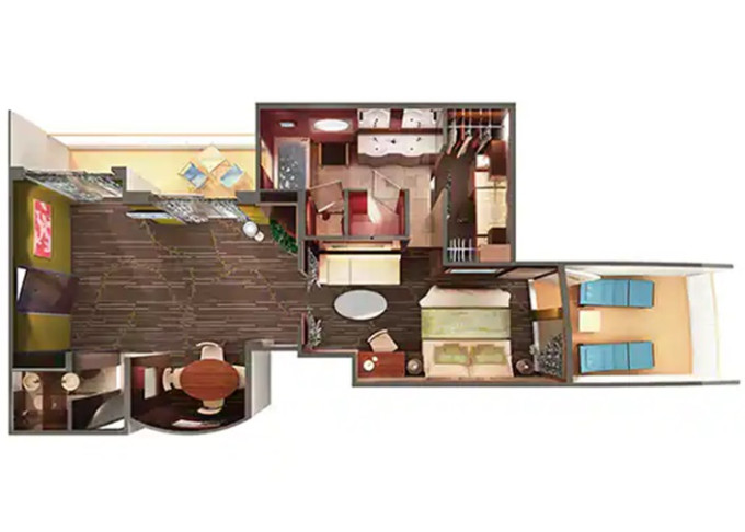| S4 - Deluxe Family Suite 53 m² / balkon 8 m². Výhody Suite. 11. paluba - vpředu, střed. Max 6 osob. | 203 018 Kč 101 509 Kč za osobu | ||
