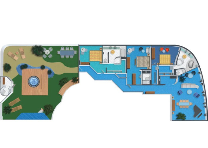 | S1 - Garden Villa - 3 ložnice 622 m² / balkon 414 m². Vířivka. Výhody Suite. 14. paluba - střed. Max 7 osob. | 747 901 Kč 373 951 Kč za osobu |