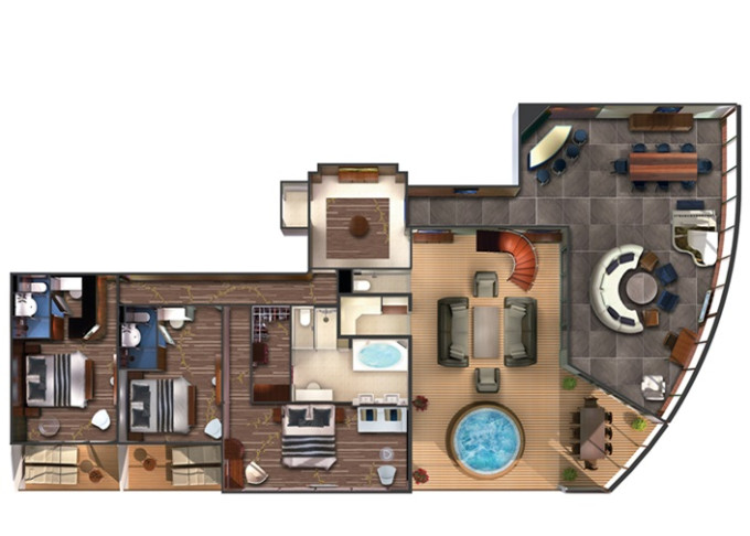 | H1 - The Haven Garden Villa - 3 ložnice 438 m² / balkon 199 m². Výhody The Haven. 14. paluba - střed. Max 8 osob. | 364 823 Kč 182 411 Kč za osobu |