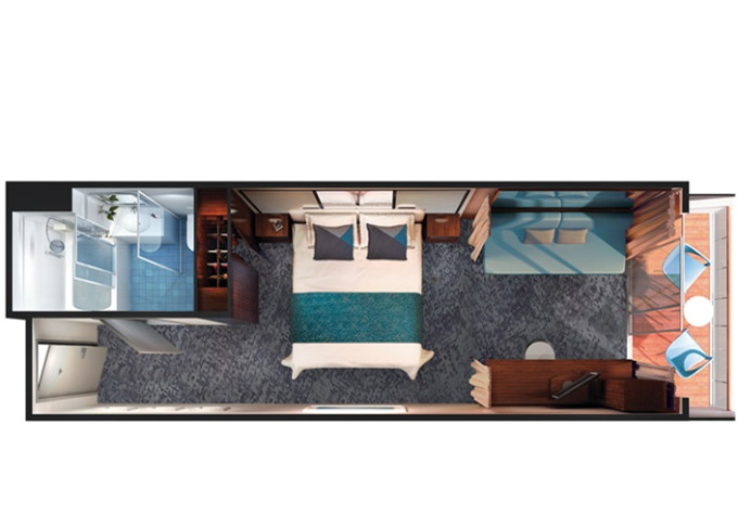 | SM - Aft-facing Penthouse 35-36 m² / balkon 8-9 m². Výhody Suite. 10. paluba - vpředu. Max 3 osoby. | 119 490 Kč 59 745 Kč za osobu |