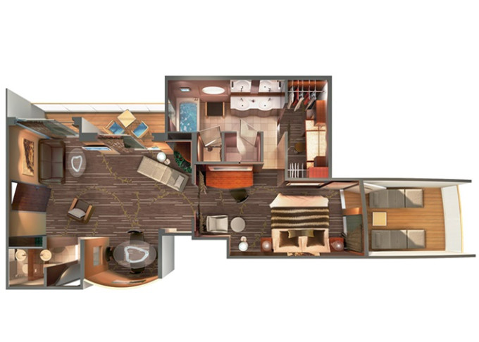 | S4 - Deluxe Family Suite - 2 ložnice 51 m² / balkon 5 m². Výhody Suite. 11. paluba - vpředu, střed. Max 6 osob. | 97 483 Kč 48 741 Kč za osobu | ||