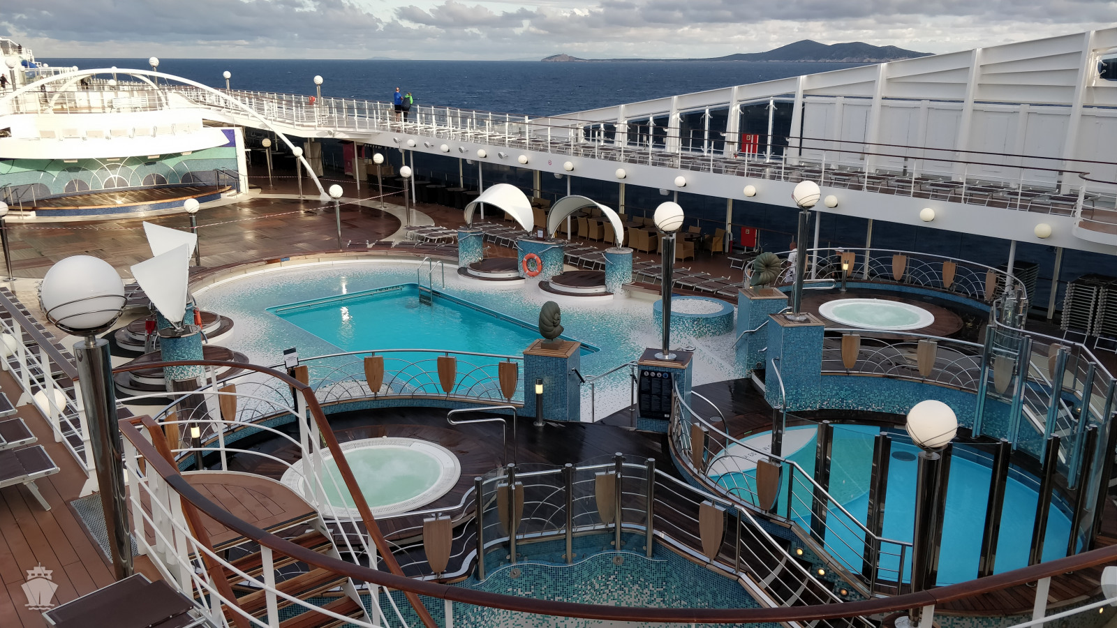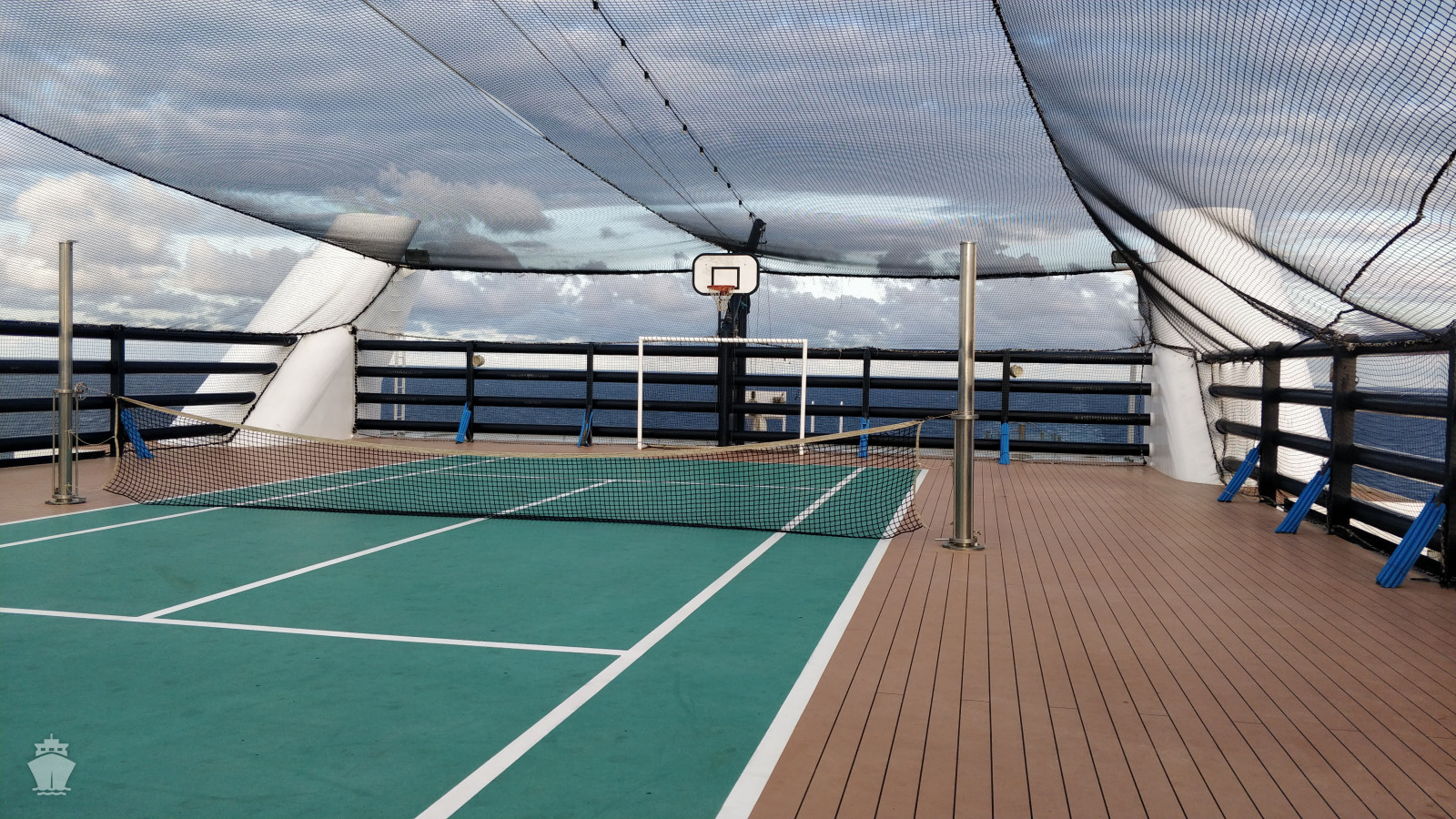 - sportovní aktivity na otevřených palubách (jogging, basketbal, fotbal, tenis), bazény a lehátka