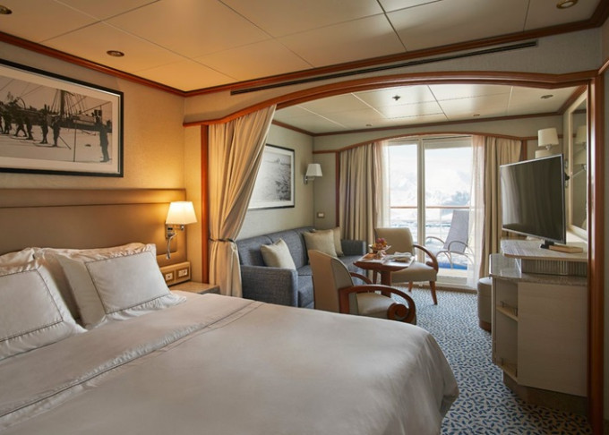 | DV - Deluxe Veranda Suite 27m² (včetně balkona). Centrálna pozícia. Ložnice s obývací částí. | 1 035 348 Kč 517 674 Kč za osobu |