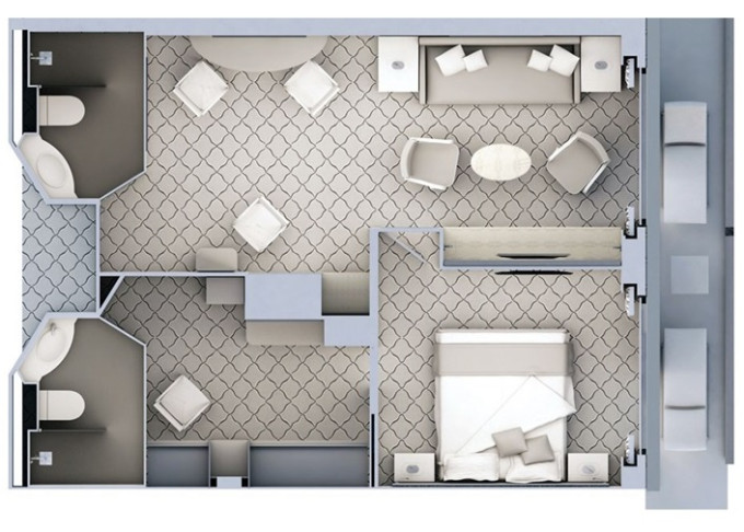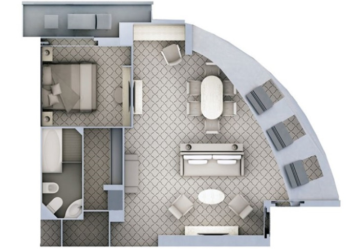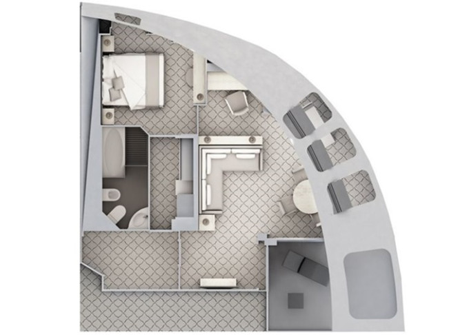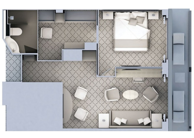 | R1 - Royal Suite 1 69 m² (včetně balkona), oddělená obývací časť a ložnice | 3 181 068 Kč 795 267 Kč za osobu | ||