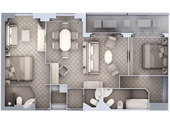 | R2 - Royal Suite 2 96 m² (včetně balkona), oddělená obývací časť a 2 ložnice, 2 koupelny | 2 515 845 Kč 2 515 845 Kč za osobu |