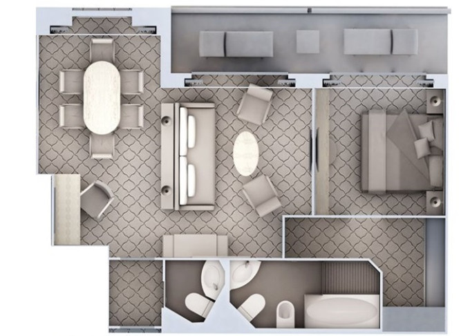 | R1 - Royal Suite 1 69 m² (včetně balkona), oddělená obývací časť a ložnice | 1 590 534 Kč 795 267 Kč za osobu | ||