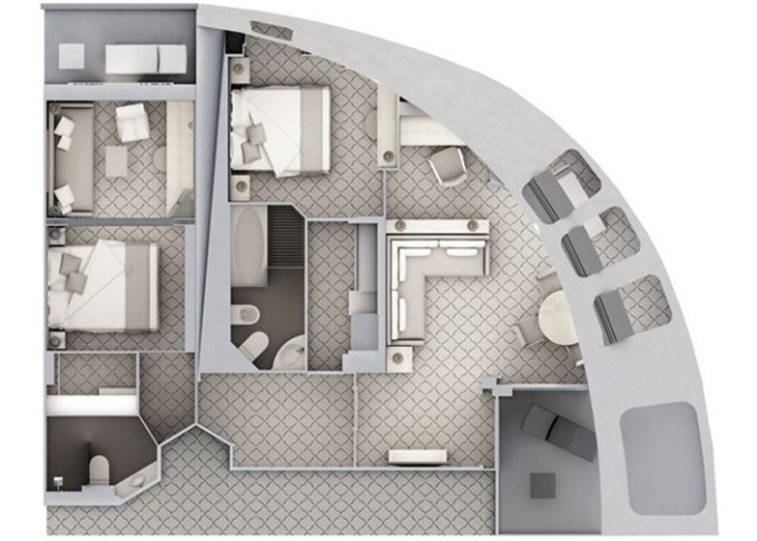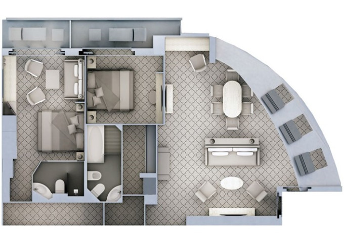 | R1 - Royal Suite 1 69 m² (včetně balkona), oddělená obývací časť a ložnice | 2 385 801 Kč 795 267 Kč za osobu | ||