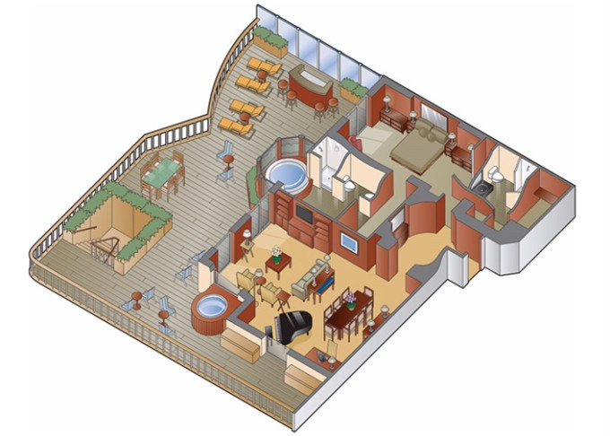 | PS - Penthouse Suite 135 m² + balkon s vířivkou 103 m² . Koupelna s vířivkou. 6. paluba. Max 3 osoby. Výhody Suite. | 771 559 Kč 771 559 Kč za osobu | ||