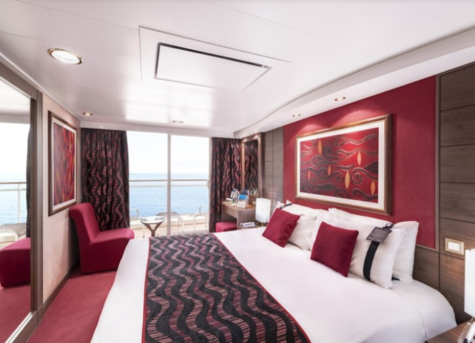 Kajuta s balkónem: 17-23 m², kajuta s manželskou postelí (na požádání 2 oddělené postele) a rozkládací pohovka. Klimatizace, koupelna se sprchou nebo vanou a WC, toaletní stolek, prostorná skříň, interaktivní TV, telefon, minibar, sejf, vysoušeč vlasů. Balkony se stolkem a židlemi.
