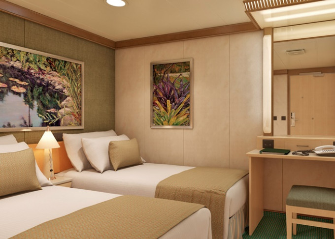 Základní vybavení všech kabin: koupelna se sprchou a WC, TV s plochou obrazovkou, telefon, elektrická zásuvka 110 AC, regulovatelná klimatizace, postele Carnival Comfort, vysoušeč vlasů, bezpečnostní schránka, mini chladnička (není ve všech kajutách).