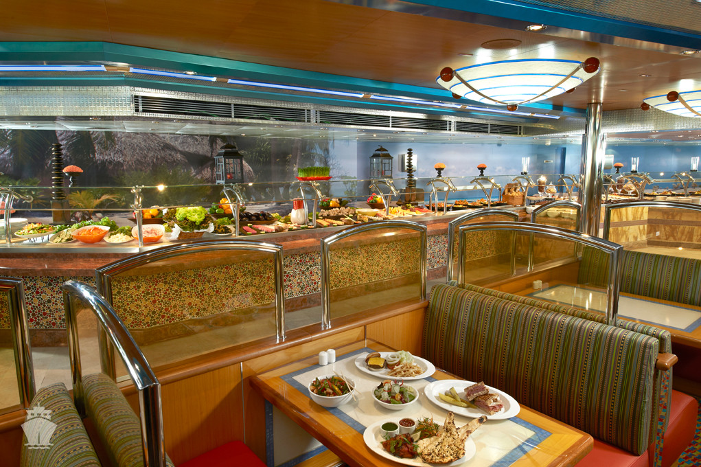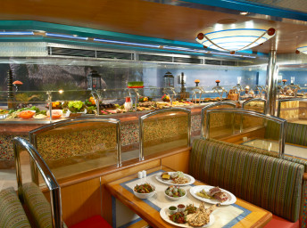 - plná penze v hlavních restauracích Main Dining Room, v 24/7 bufetových restauracích Lido a v 24/7 pizzerii
