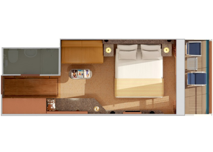 | 8M - Kajuta s větším balkonem Aft-View 17 m² / balkon 5 m². Vzadu. | 43 265 Kč 21 632 Kč za osobu | ||