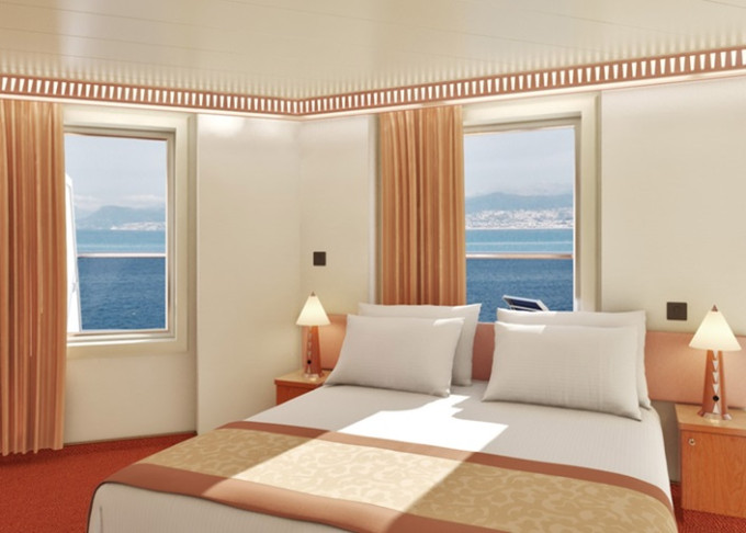 | 6K - Vnější kajuta Grand Scenic 29 m². Velké panoramatické neotevíratelné okno. | 31 060 Kč 15 530 Kč za osobu | ||