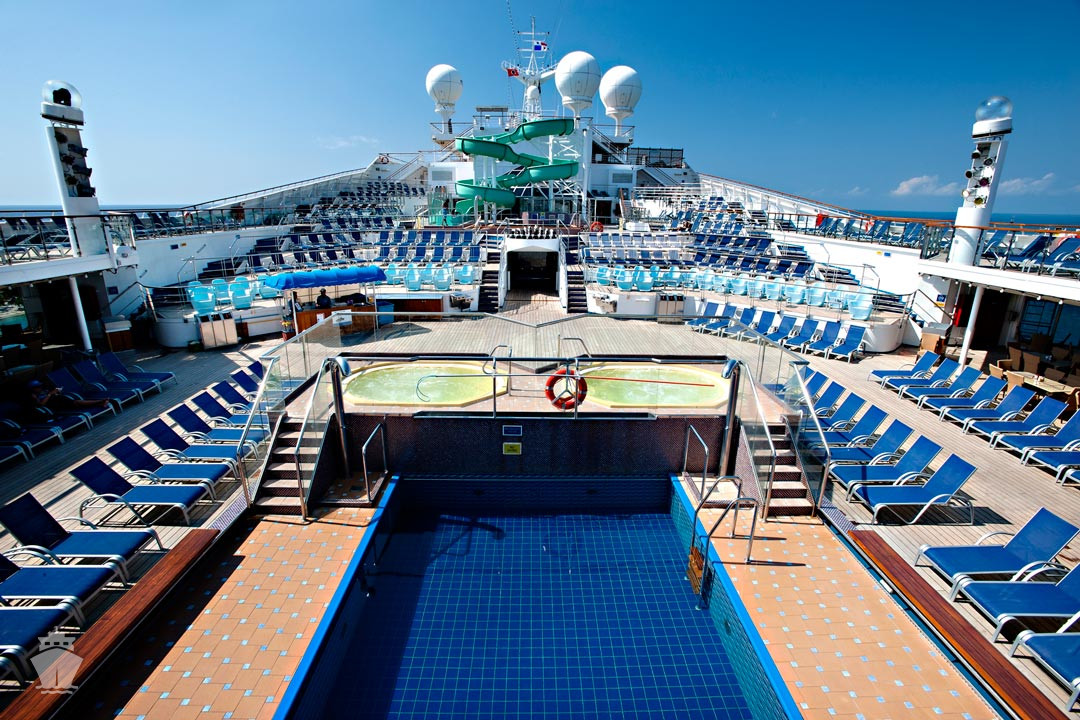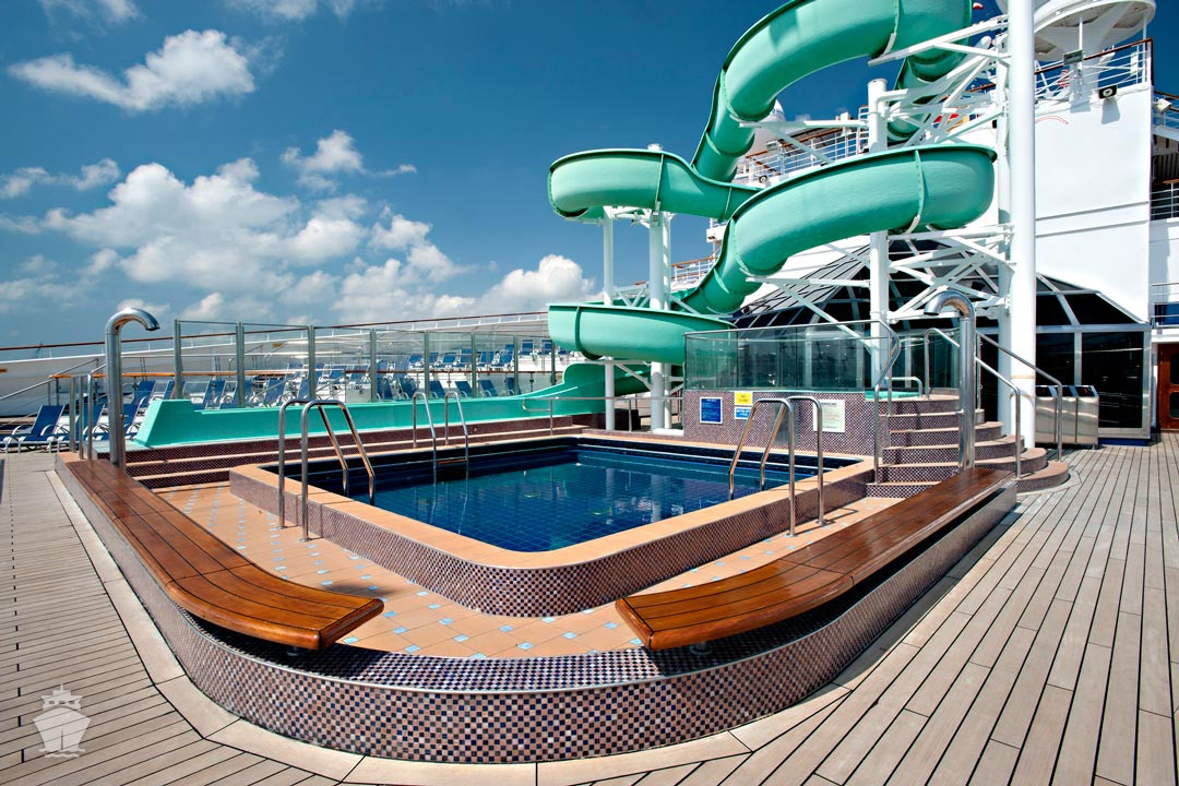 - využívání fitness centra, sauny, běžecké dráhy, bazénů, vířivek, tobogánů a vodního parku (na vybraných lodích), minigolf, basketbal, volejbal, stolní tenis, knihovna