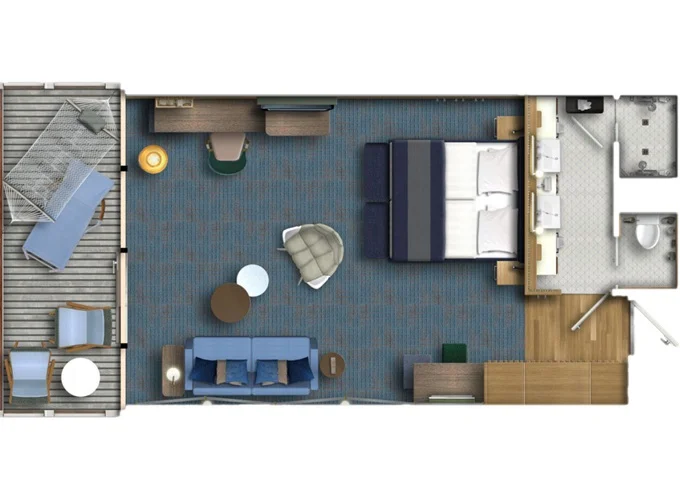 | SHZO - Horizont Suite 38-40 m² + balkon 16 m² s lehátky a houpací sítí. Obývací část a oddělená ložnice. 7-8. paluba. Max 4 osoby. Výhody Suite. | 208 720 Kč 69 573 Kč za osobu |
