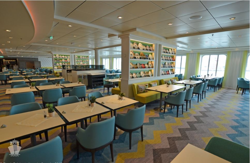 Kulinářské umění, kvalita a vynikající jídlo na moři:  V restauracích a bistrech si můžete každý den dopřát lahodné pokrmy, objevit nové kulinářské obzory a zažít exkluzivní gurmánské chvíle. Klidná atmosféra – bez pevně stanovených časů jídla nebo posezení, a tak rozmanitá, že vás každý den překvapí.