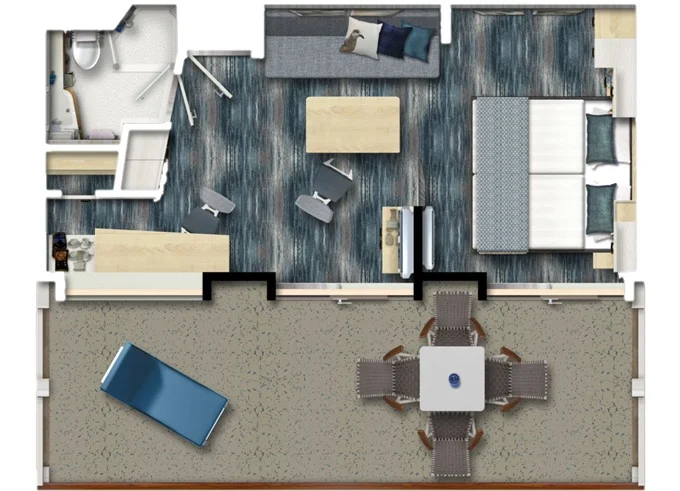 | SUHO - Himmel & Meer Suite 42 m² + prekrytá terasa 29 m² v patře se stolem, lehátky a s houpací sítí. Ložnice s obývací částí a jedálenským kútom. 14. paluba. Max 4 osoby. Výhody Suite. | 269 491 Kč 269 491 Kč za osobu | ||