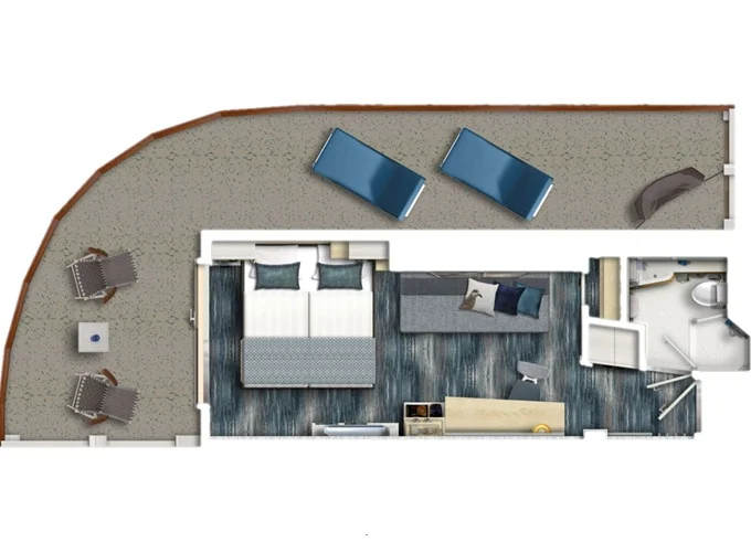 | SUSO - Übersee Suite 40 m² + balkon 9 m² s lehátky a houpací sítí. 14. paluba. Max 4 osoby. Výhody Suite. | 249 034 Kč 124 517 Kč za osobu | ||