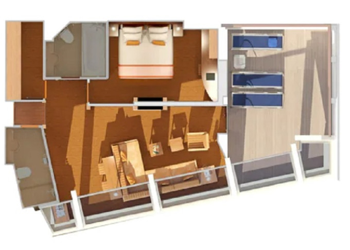 | CS - Captain's Suite 46 m² / balkon 18 m². Výhody Suite. Max 5 osob. | 208 170 Kč 104 085 Kč za osobu | ||