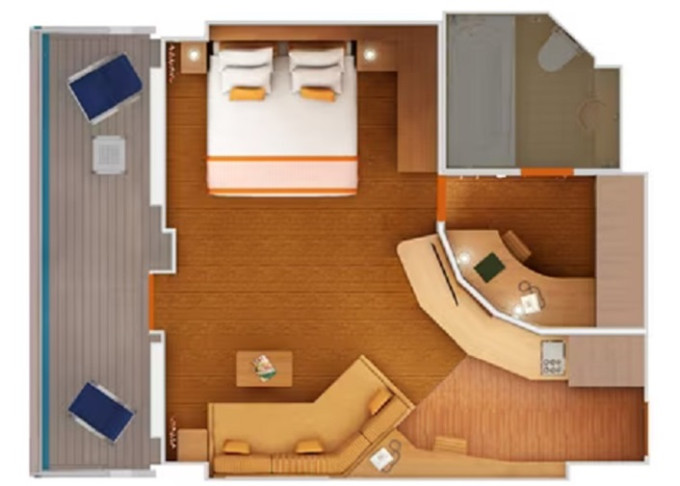 | 9C - Kajuta s balkonem Premium Vista 17 m² / rohový balkon 7 m². | 91 531 Kč 45 765 Kč za osobu | ||