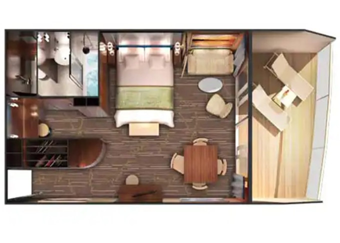 | S3 - Owners Suite 67 m² / balkon 14 m². Výhody Suite. 9. paluba - vpředu. Max 4 osoby. | 157 003 Kč 78 501 Kč za osobu | ||