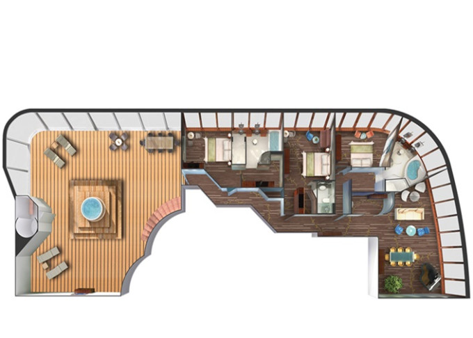 | S1 - Garden Villa - 3 ložnice 622 m² / balkon s vířivkou 414 m². Výhody Suite. 14. paluba - střed. Max 7 osob. | 454 603 Kč 227 301 Kč za osobu | ||
