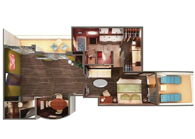 | S4 - Deluxe Family Suite - 2 ložnice 55 m² / balkon 5 m². Výhody Suite. 11. paluba - vpředu, střed. Max 6 osob. | 145 749 Kč 72 874 Kč za osobu | ||