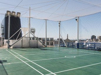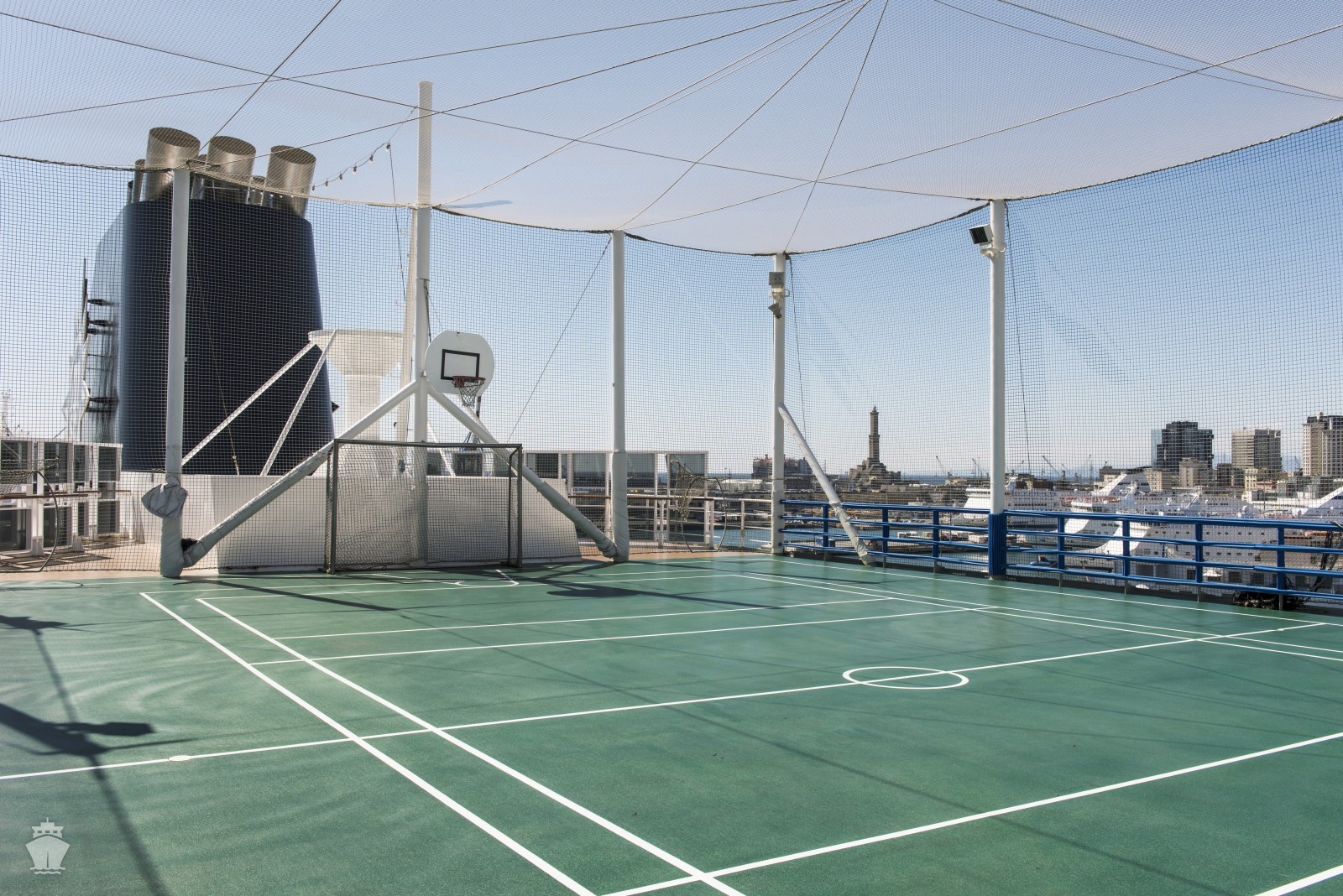 - sportovní aktivity na otevřených palubách (jogging, basketbal, fotbal, tenis), bazény a lehátka